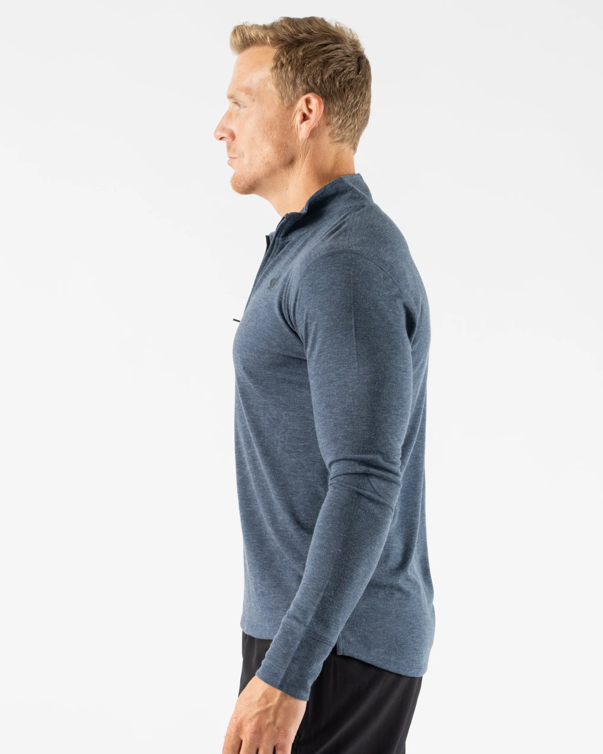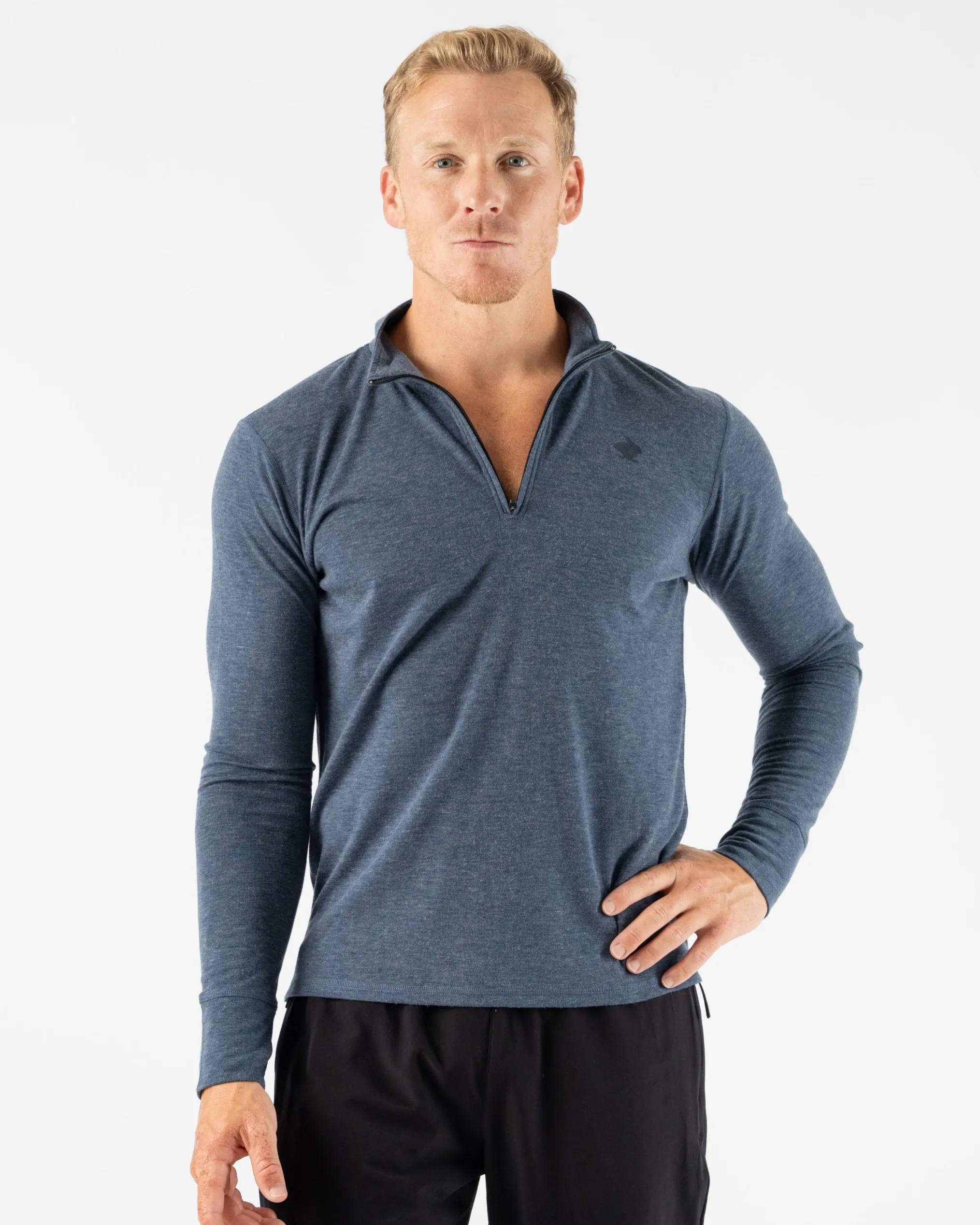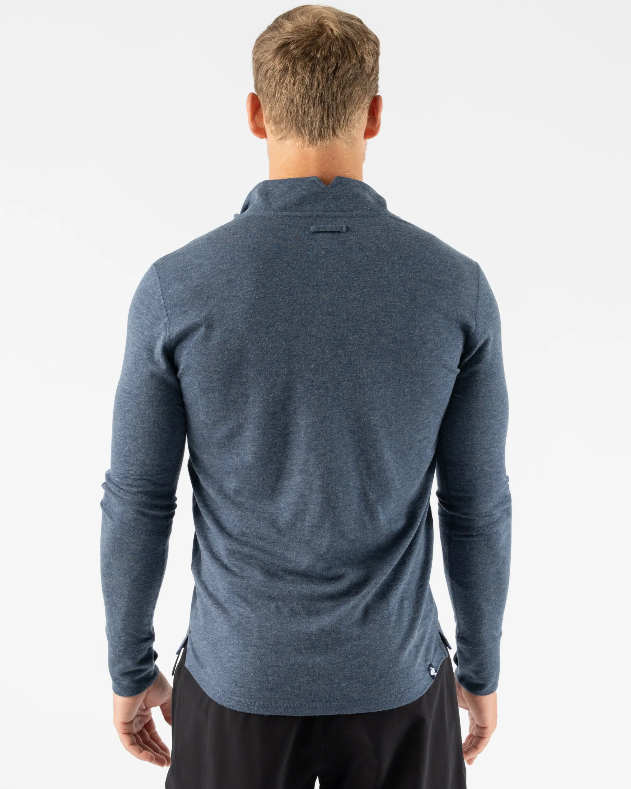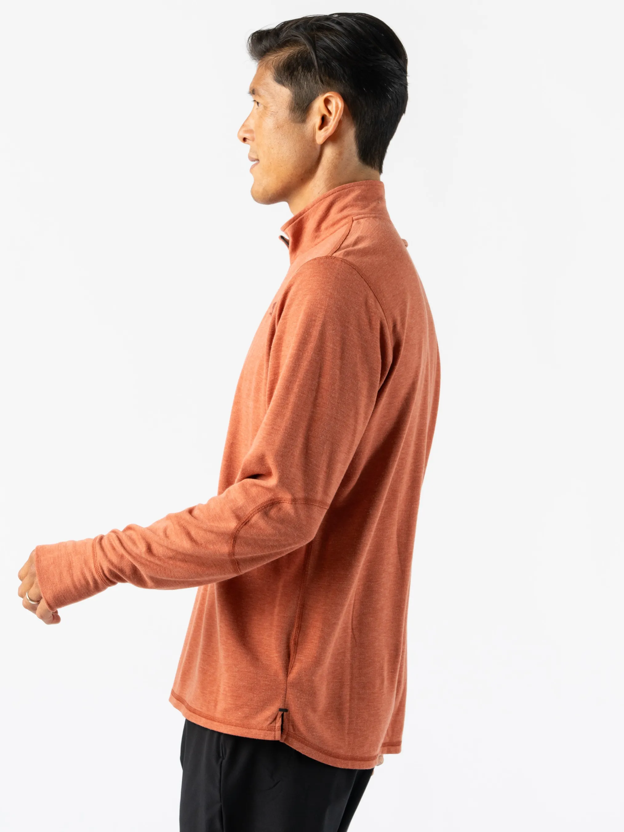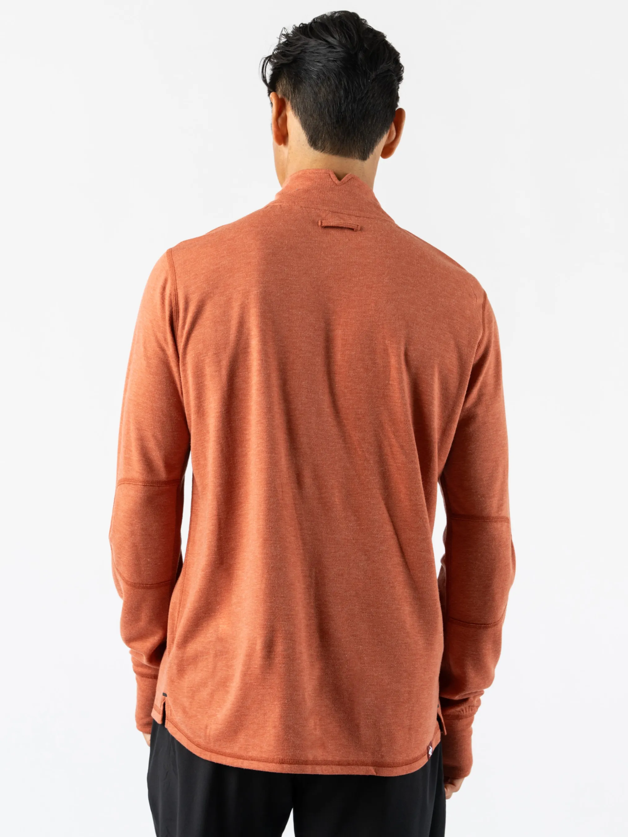 Pull on this cold weather essential, designed to perform as it warms. Made partially from wool, midweight knit naturally resists odor, dries quickly, and regulates temps so you can keep moving. Nifty thumbholes protect your hands. At day’s end, hang up the top by a loop in the back.