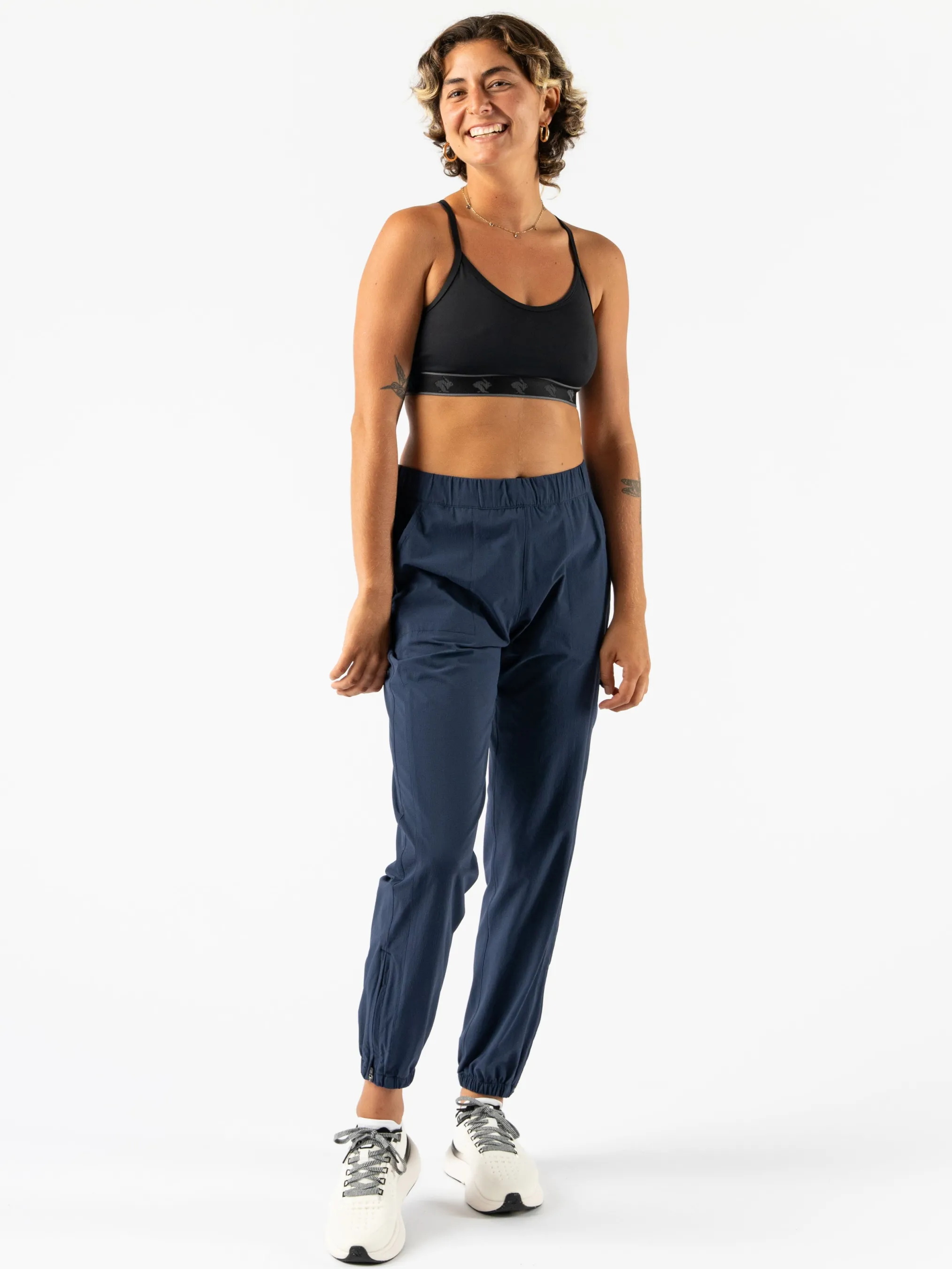 - Mid-rise, elastic waistband