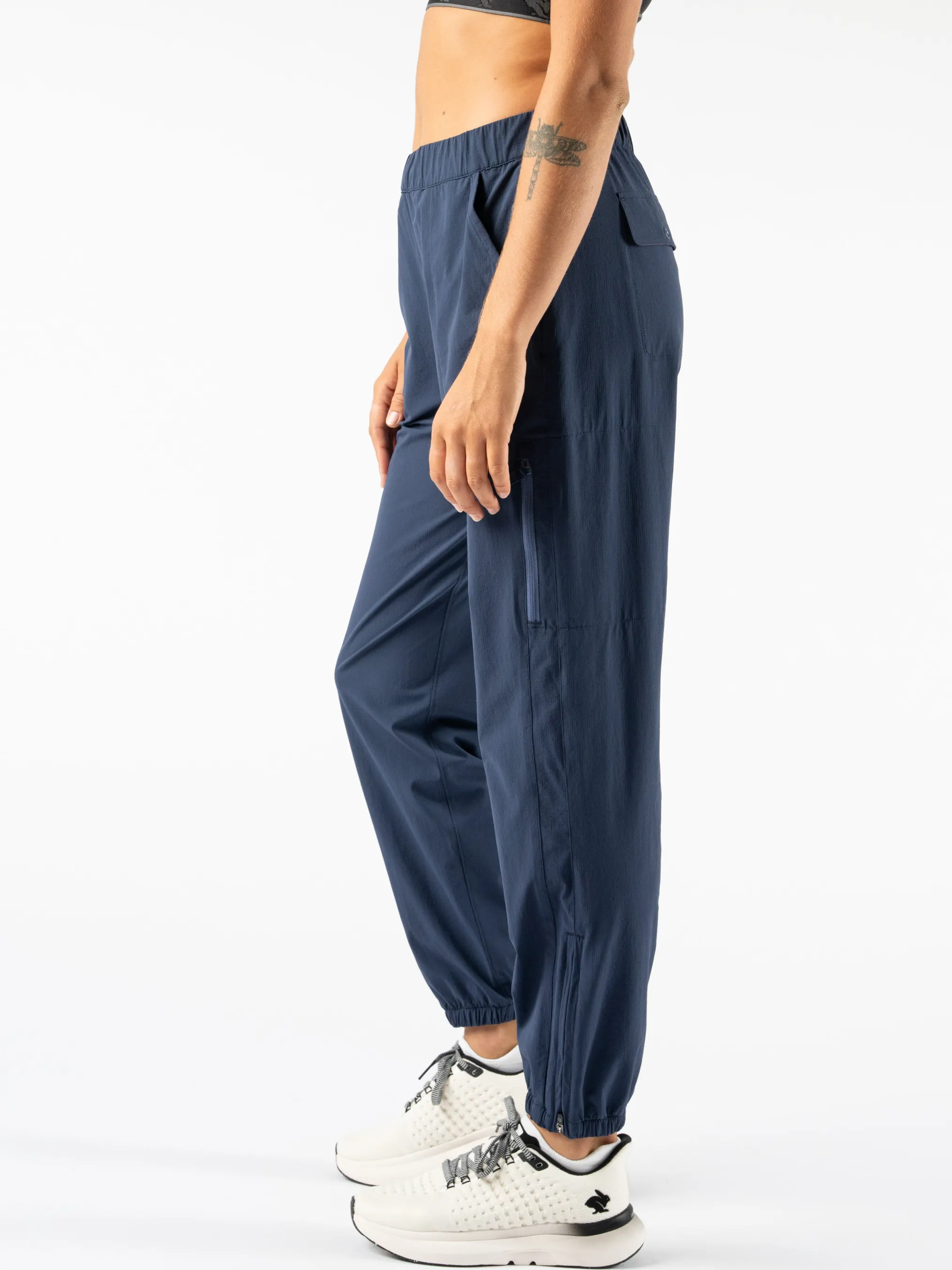 - Elastic cuffs with ankle zippers